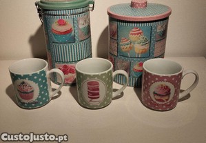 Preço: 15 €Conjunto de caixas e chávenas cupcakes