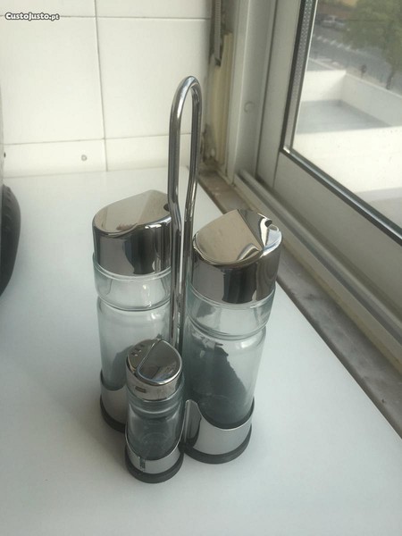 Preço: 10 €Conjunto Galheteiro + Saleiro + Pimenta