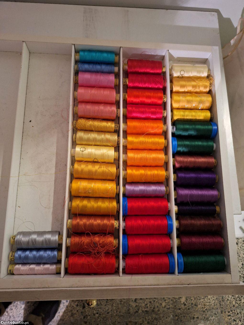 Linhas de bordar à máquina e respetiva caixa