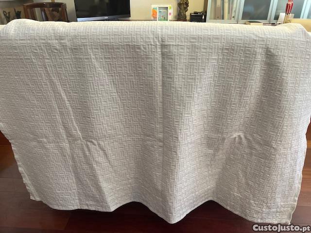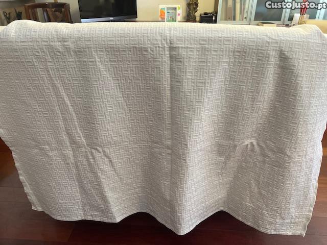 São 2 tecidos em algodão de muito boa qualidade, de cor bege, com desenhos geométricos em relevo.