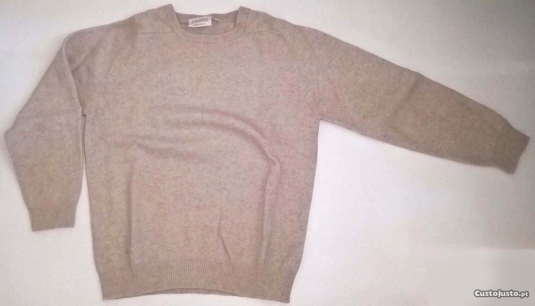 É de boa qualidade, com uma excelente qualidade térmica, é muito quentinha. É em pura lã de cordeiro, muito fofinha, de cor completamente bege ligeiramente mesclado, não tem quaisquer tipos de estampagens. Possui malha elástica nas mangas e em baixo na cintura, para melhor se ajustar ao corpo. Tem um estilo clássico, mas é muito prática, é muito confortável e moderna, combinando muito bem com diferentes tipos de estilos e ocasiões.
