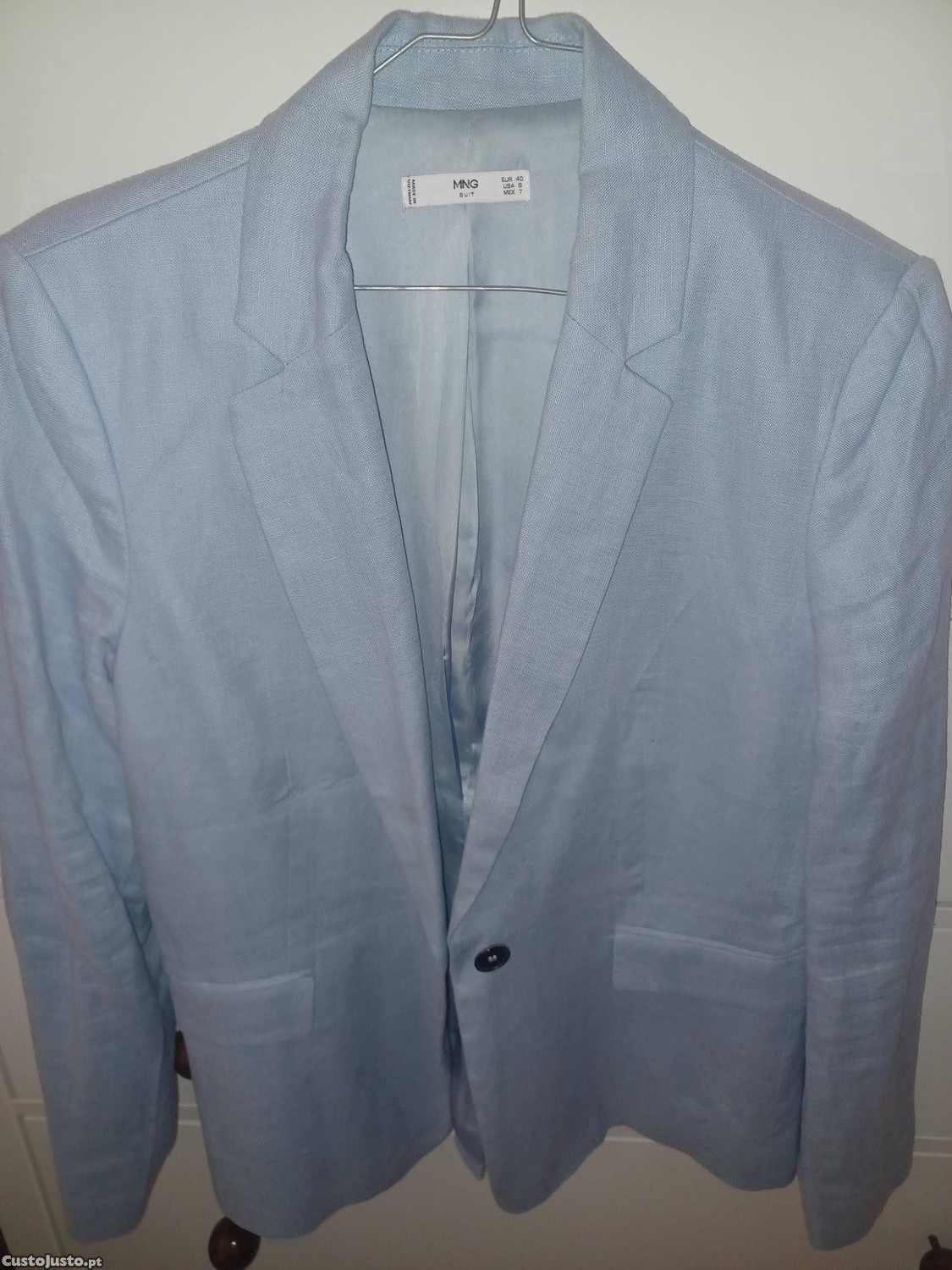 Preço: 25 €Blazer em linho azul claro da Mango