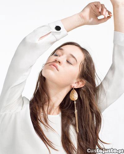 Blusa branca com botões grandes no punho da Zara Woman - 10 eur