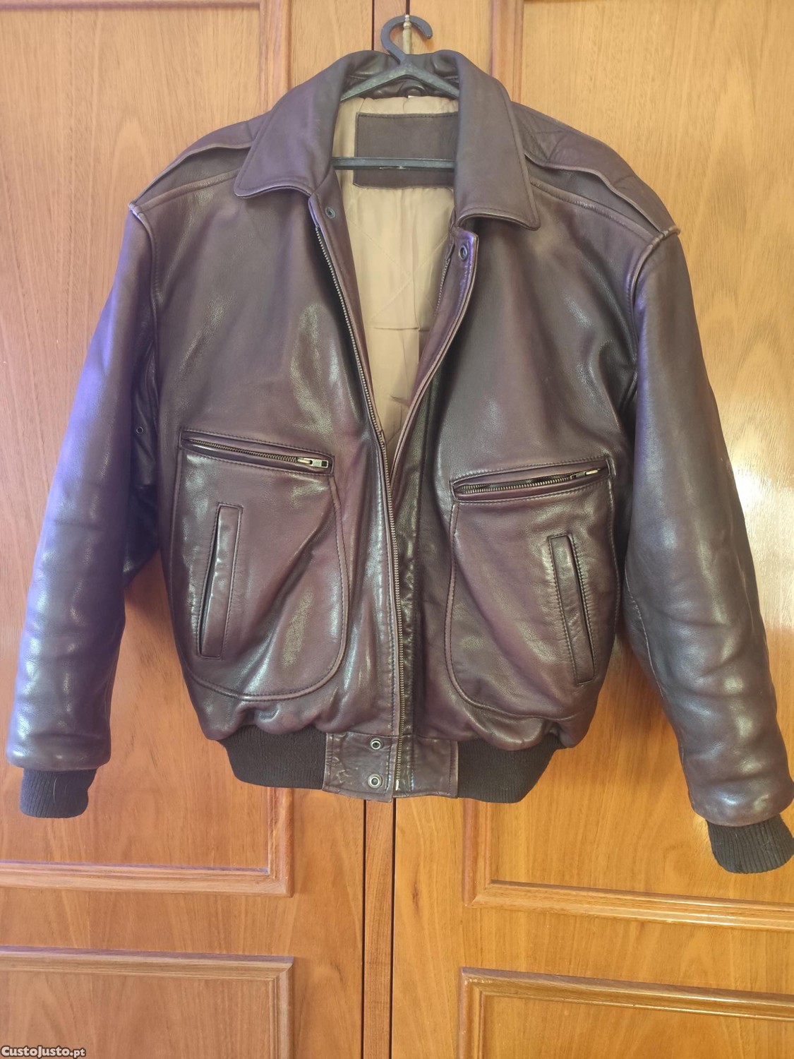 Vendo blusão aviador em couro usado ,Tamanho M