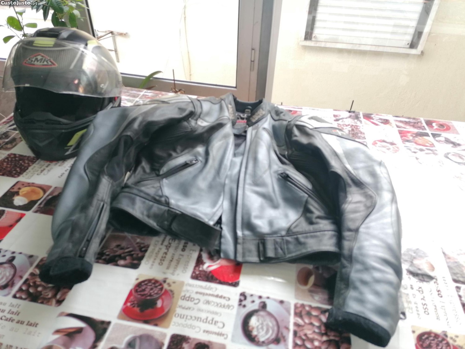 Preço: 80 €Conjunto Casaco Motard e Capacete ( Usado )