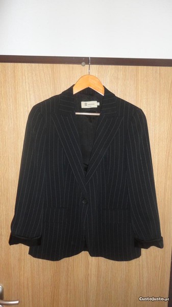Fato completo de senhora cor azul escuro às riscas S Motions, tamanho 42.
