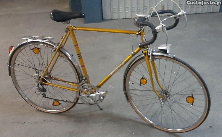 L' Alpine 2000, roda 700/28, tamanho 53, pneus e câmaras de ar novos a estrear, pintura original, transmissão Huret, travões Racer e rodas Rígida.