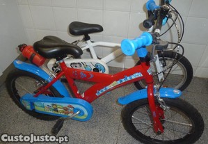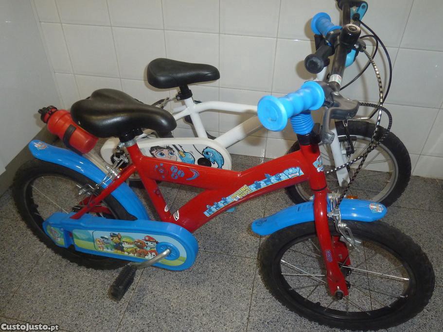 São duas bicicletas em muito bom estado, para crianças dos 5 aos 8 anos, compradas na Decathlon. A bicicleta branca tem rodinhas laterais. Cada bicicleta é 50EUR; 90 EUR o conjunto.