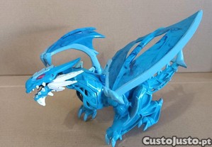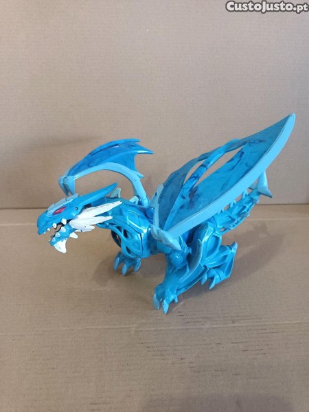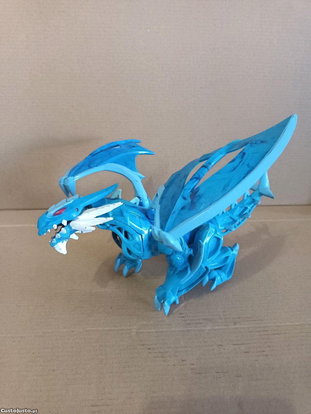 Boneco de um dragão feito em pvc de tons azuis com a característica de ser desmontável. Todo ele é articulável, as asas, as patas, a cabeça, a boca e a cauda. As asas medem de envergadura 26 cm e tem de comprimentos 22 cm. Está em bom estado. Barato para desocupar. Negociável, vendo pela melhor oferta. Possibilidade de vir buscar em mão.