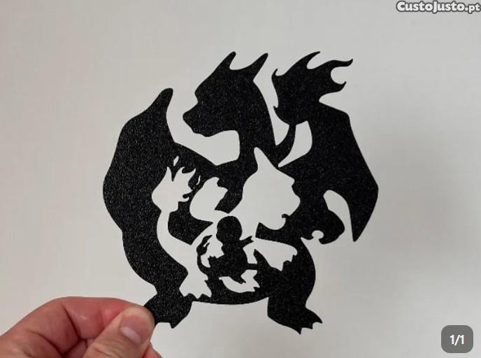 Uma peça artística inspirada na evolução do icónico Charizard do universo Pokémon, representando a família completa (Charmander, Charmeleon e Charizard) em formato de Wall Art decorativa, produzida em impressão 3D com filamento PLA de alta qualidade.