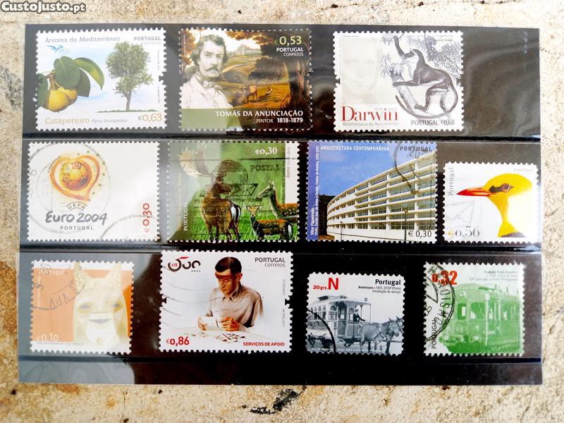 Vendo carteira com 11 selos usados de Portugal Continental. Valores em Euros. Diferentes anos, diversas colecções e diversos valores. Entrego em mão em Loures ou possibilidade de envio por CTT com portes a cargo do comprador. Contacto preferencial por t/m. Artigo disponível enquanto activo o anúncio.