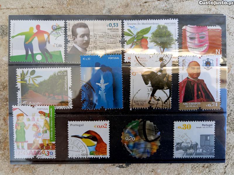 Vendo carteira com 12 selos usados de Portugal Continental. Valores em Euros. Diferentes anos, diversas colecções e diversos valores. Entrego em mão em Loures ou possibilidade de envio por CTT com portes a cargo do comprador. Contacto preferencial por t/m. Artigo disponível enquanto activo o anúncio