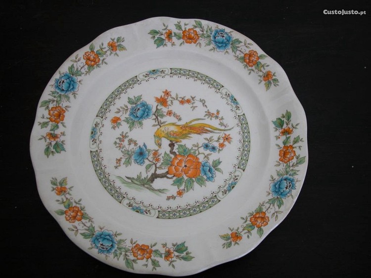 N 9349.1 2 Pratos rasos de Fábrica de Louça de Sacavém, motivo Faisão, com 24 cm de Diâmetro. Um dos raros motivos, fabrico já da fase final de laboração desta fábrica, muito decorativos, para quem coleciona Sacavém. Novo, nunca usado.