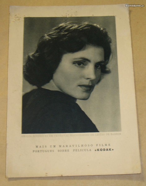 cartolina com foto impressa de Amália -publicidade ao filme Vendaval Maravilhoso de Leitão de Barros - pequenas falhas superficiais em cima que não atravessam para o outro lado