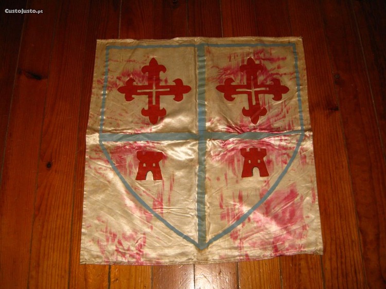 Antigo heráldica estandarte brasão de família com cruz aviz e castelos em cetim pintado 1930/40s, qualquer informação será apreciada.