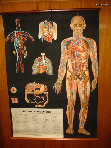 Preço: 120 €Antigo mapa lona Corpo Humano sistema circulatorio