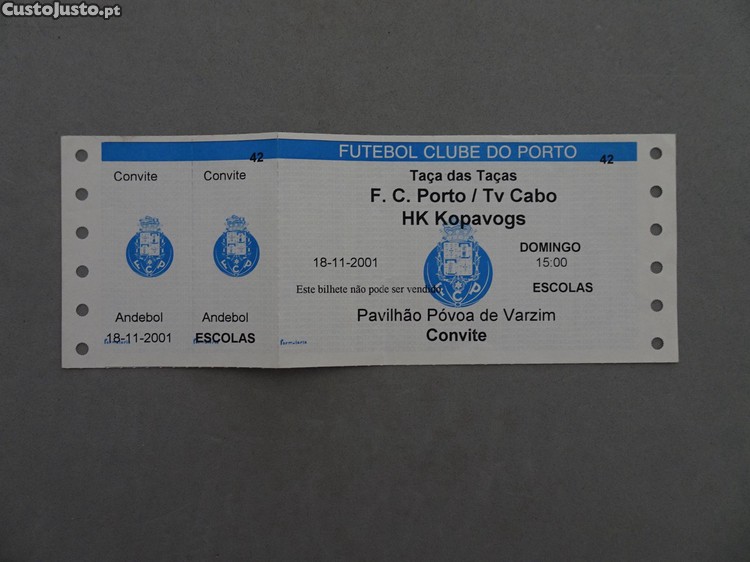 Preço: 5 €Bilhete de futebol Porto Tv Cabo HK Kopavogs Taça das Taças Nov 2001