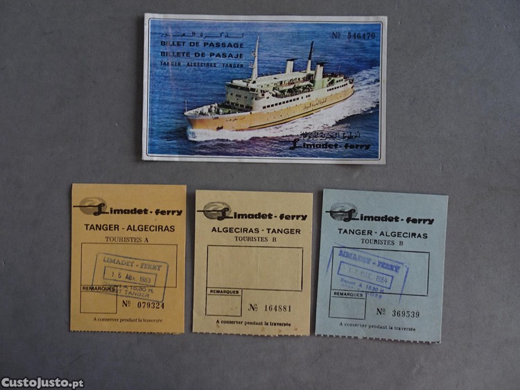 Preço: 10 €Bilhete de travessia de barco Tanger Algeciras ferry 1983/1984