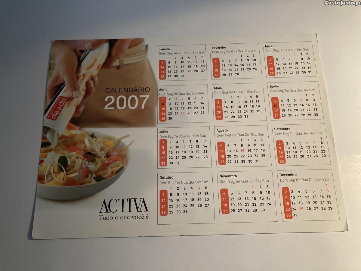 Calendário antigo de 2007.