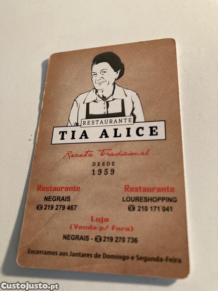 Preço: 2 €Calendário- Restaurante