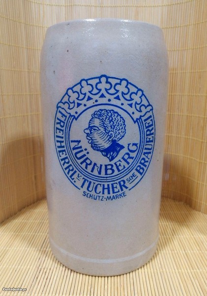 Preço: 20 €Caneca de cerveja em grés da marca Alemã, Nürnberg Freiherrl Tucher Brauerei, aferida com 1 L