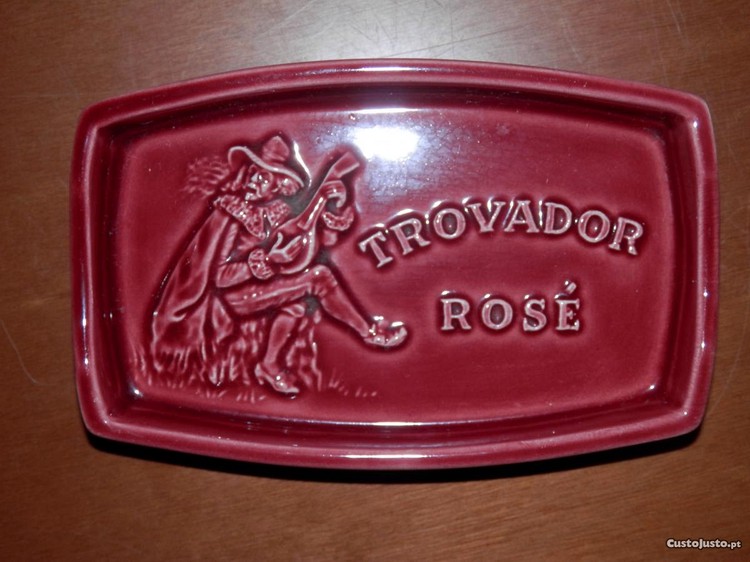 Cinzeiro em faiança da marca SECLA, com pubicidade ao vinho "Trovador Rosé".