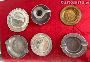 Conjunto de 6 peças em material nobre (4 em estanho e duas noutro metal)