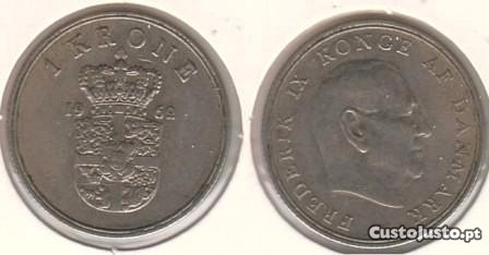 Dinamarca - 1 Krone 1962 - bela/soberba