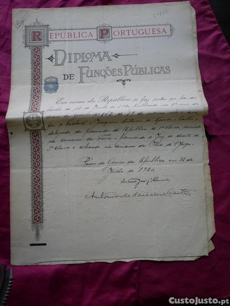 Diploma assinado por António José dAlmeida.