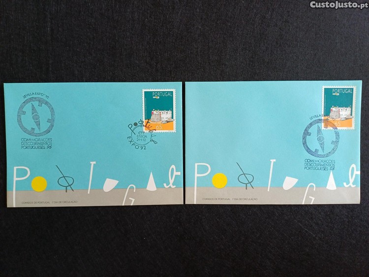 Filatelia - Portugal Expo 92, FDC e Envelope com carimbo do pavilhão de Portugal, 1992