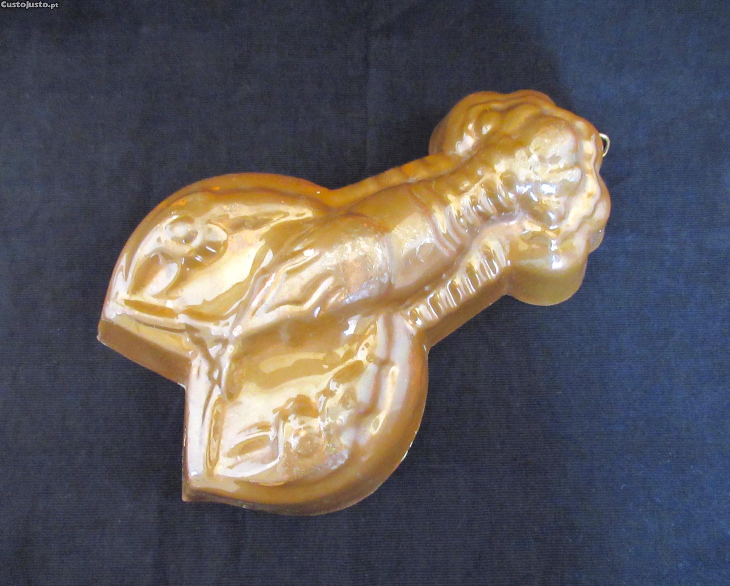 Forma Antiga para Bolos em Cobre com o interior forrado a Estanho. Com argola de suspensão. Formato de Lavagante. Dim: 6,5x25,4x16,8 cm. O preço não inclui eventuais portes e não envio à cobrança.