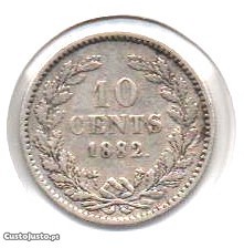 Preço: 30 €Holanda - 10 Cents 1882 - mbc/mbc+ prata
