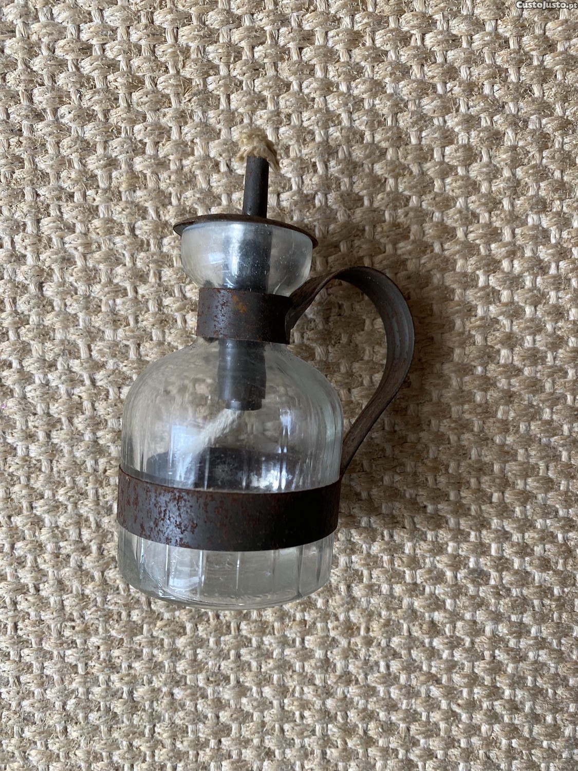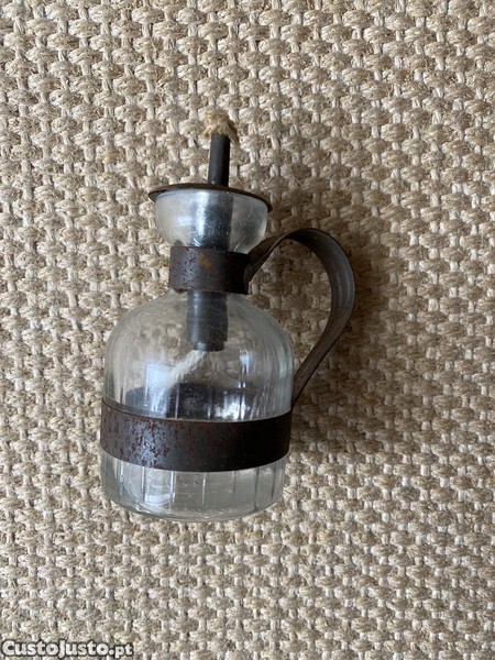 Lamparina antiga de vidro e metal