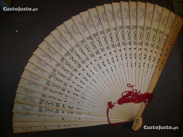 leque muito bonito em madeira, antigo