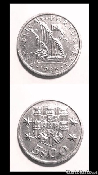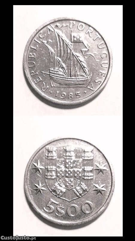 Moedas Portuguesas - 5$ escudos (Caravela)