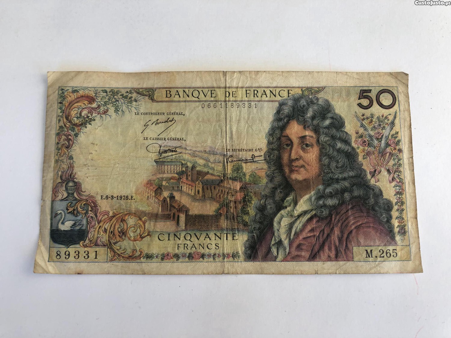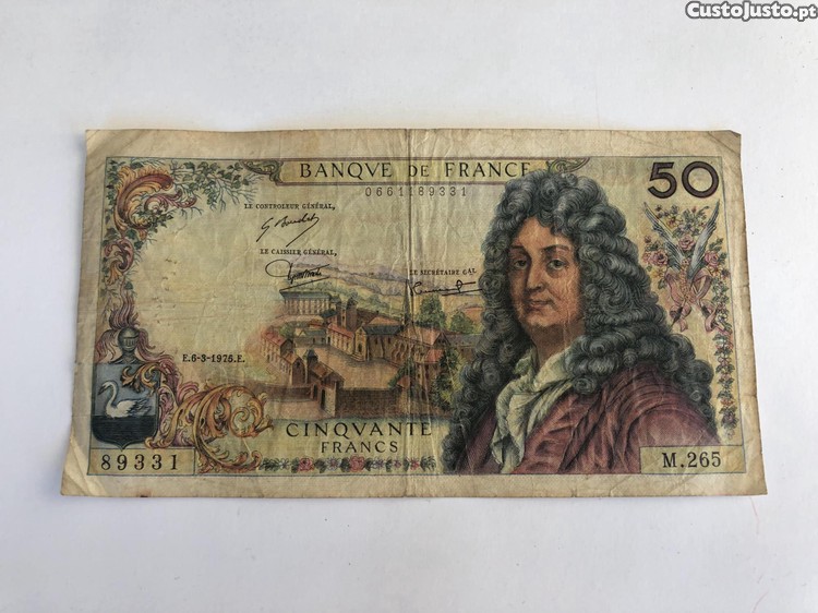 Nota antiga de 50 francos franceses.