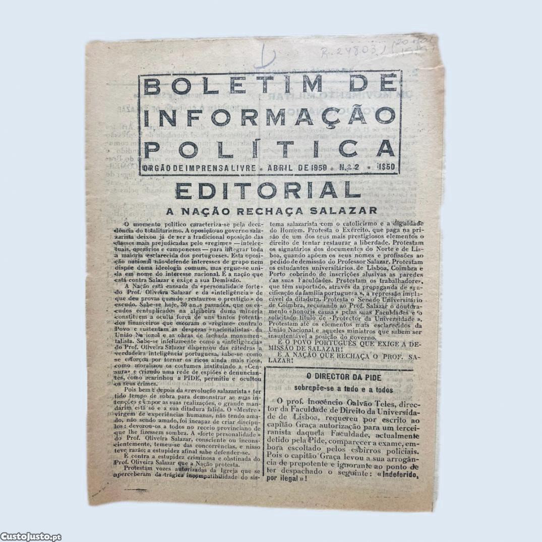 Preço: 50 €Panfleto Boletim de Informação Política 1959 - Nº 2