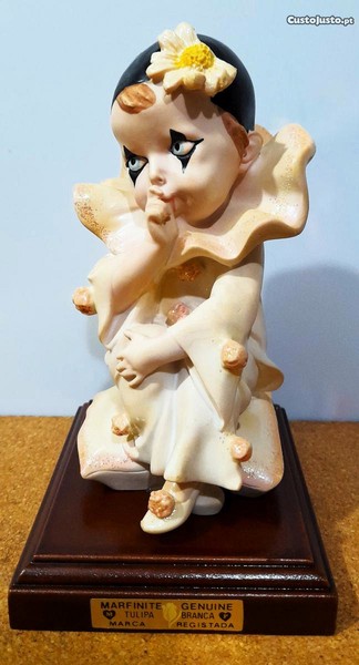 Bonita estatueta em marfinite. Trabalho português. apresenta pequeno palhacinho (pierrot) muito triste. Em excelente estado.
