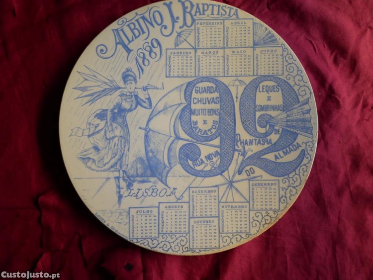 Prato calendário de 1889. Albino J. Baptista. Fábrica de Alcântara