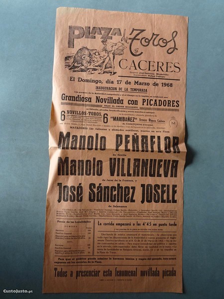 Preço: 7 €Programa de tourada Bullfight Caceres 1968