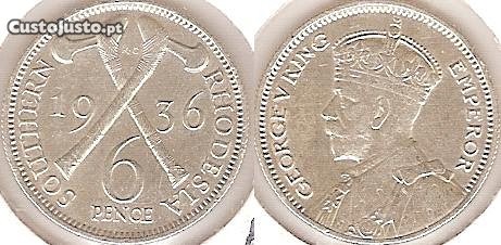Rodésia do Sul - 6 Pence 1936 - soberba prata
