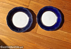 Sacavém - Gilman & CTª - 2 Pratos Antigos 24,5 cm Azul Cobalto Filete Ouro