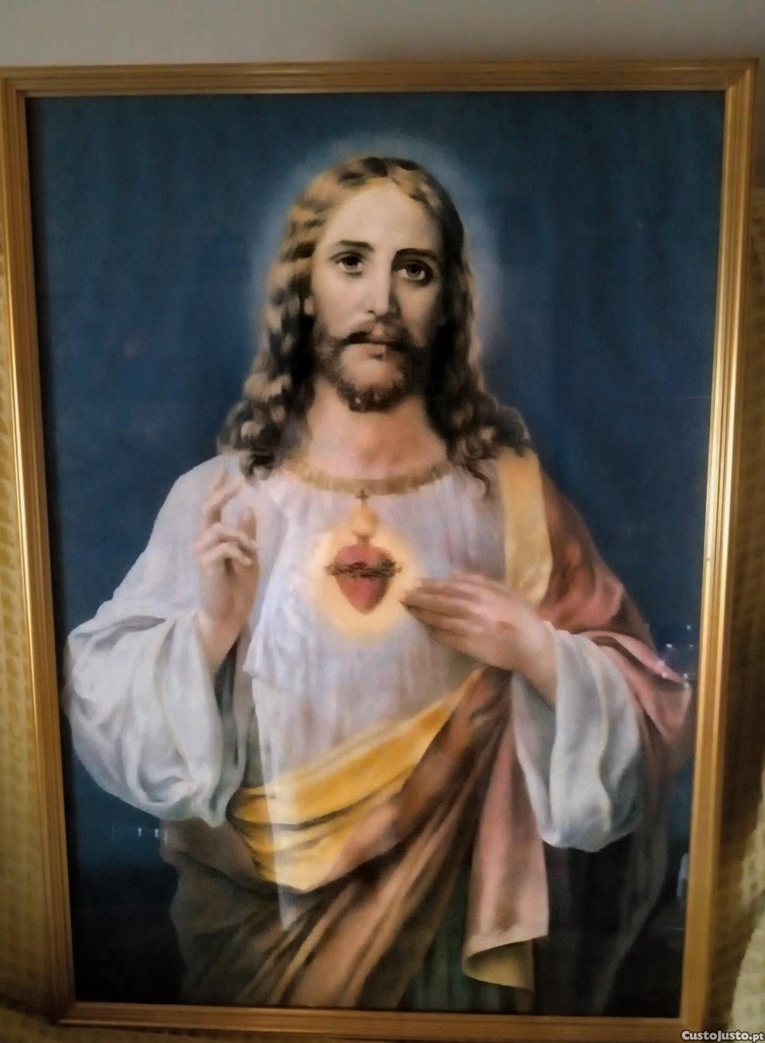 Sagrado Coração de Jesus, em moldura metálica dourada.