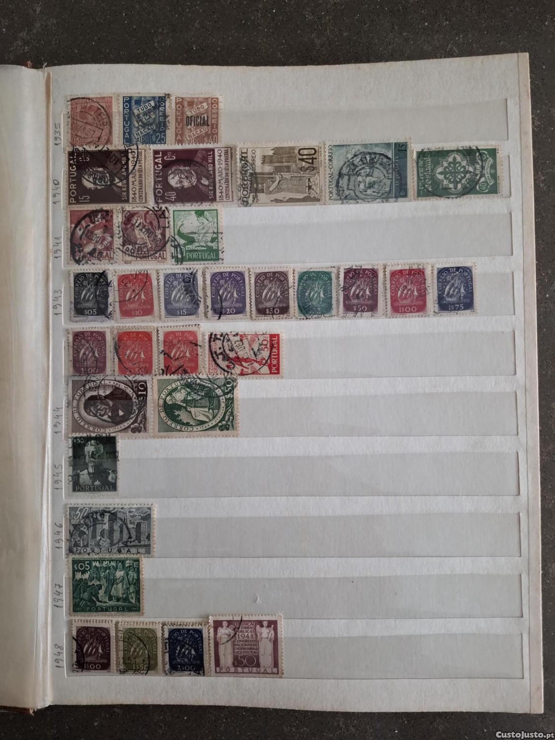 Selos para troca. Os portugueses estão organizados por ano da foto 1 à 6. Os estrangeiros não organizados constam nas fotos 7 e 8.
