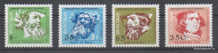 Vendo Serie Completa, MNH, sem qualquer sinal de charneira. 1992 / Navegadores Portugueses. Emissão Base. (3 grupo). Numeração 2061 a 2064. Tenho outras peças de filatelia em NOVO (selos, blocos, cadernetas, folhas miniatura, quadras...) e posso disponibilizar ficheiro com essa relação. Numeração de acordo com o Catalogo Mundifil 2024. Portes por conta e à escolha do comprador, por correio registado ou por correio azul, de acordo com tabela de preços dos CTT, em vigor. A carta será franquiada com selos comemorativos de Portugal. Pagamento através de Depósito ou Transferência Bancária. Disponibilizo-me para entregar em mão na zona de Lisboa. Se tiver alguma questão, não hesite em colocá-la.