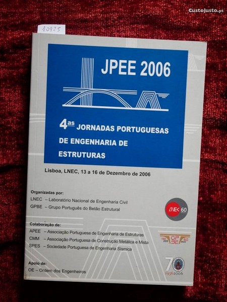 N 10925 4s Jornadas Portuguesas de Engenharia de Estruturas. LNEC 13 16 Dezembro de 2006. 17x24cm. 366 Páginas. Livro e CD.