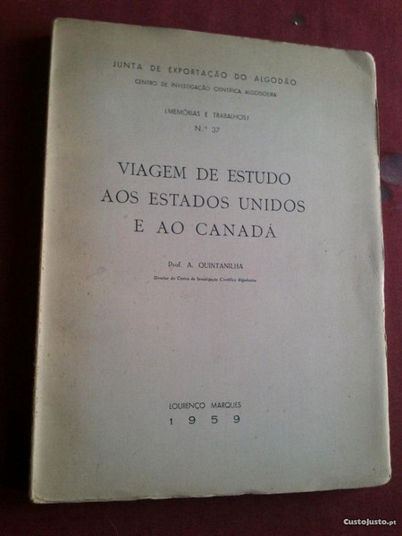 Junta de Exportação do Algodão-Centro de Investigação Científica e Algodoeira (Memórias e Trabalhos) N.º 37-Viagem de Estudo aos Estados Unidos e ao Canadá Pelo Prof. A. Quintanilha-Lourenço Marques-1959