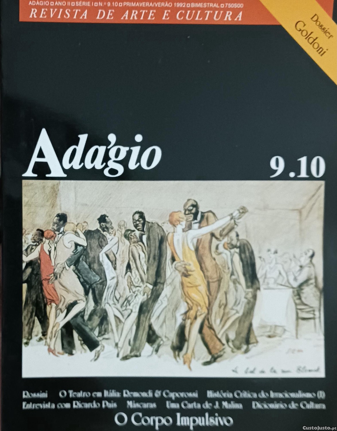 Preço: 7 €Adagio. Eevista de Arte e Cultura. 9-10. 1992. O Corpo Impulsivo; dossier Goldoni.