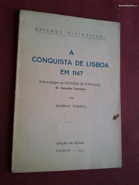 Estudos Históricos-I-A Conquista de Lisboa Em 1147 (Nota à Margem da História de Portugal de Alexandre Herculano) por Alfredo Pimenta-Edição do Autor-Lisboa-1937