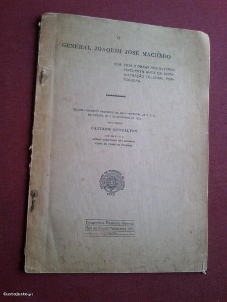 O General Joaquim José Machado (Sua Vida e Obras nos Últimos Cincuenta Anos da Administração Colonial Portuguesa)-Elogio Histórico Proferido na Sala Portugal da S.G.L. em Sessão de 2 de Novembro de 1925 Pelo Sócio Caetano Gonçalves-Tipografia e Papelaria América-Lisboa